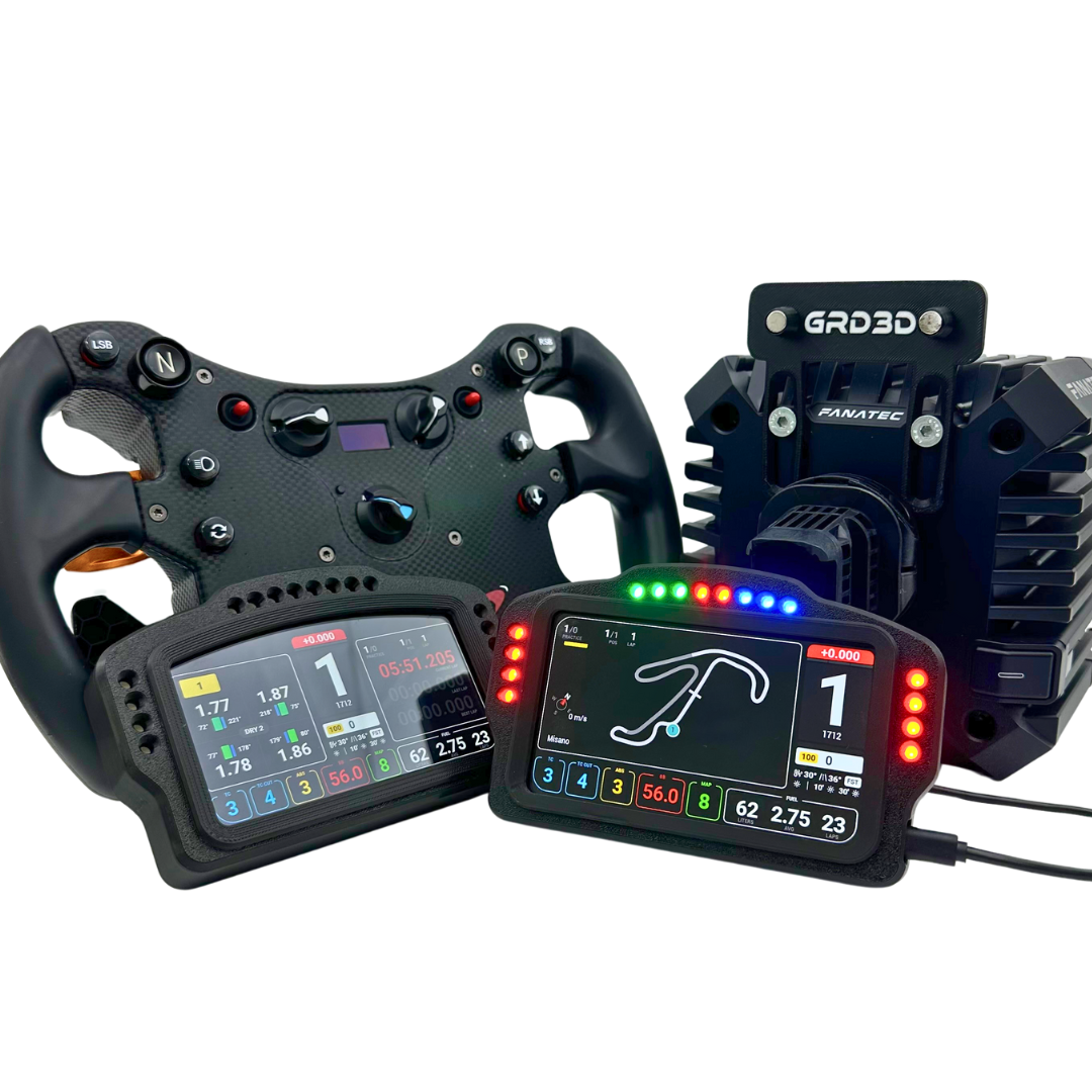 A fully customizable display with real-time telemetry, 16 RGB LEDs, and a lightweight 3D-printed design. Compatible with major racing setups, it delivers precision and performance tailored to your needs