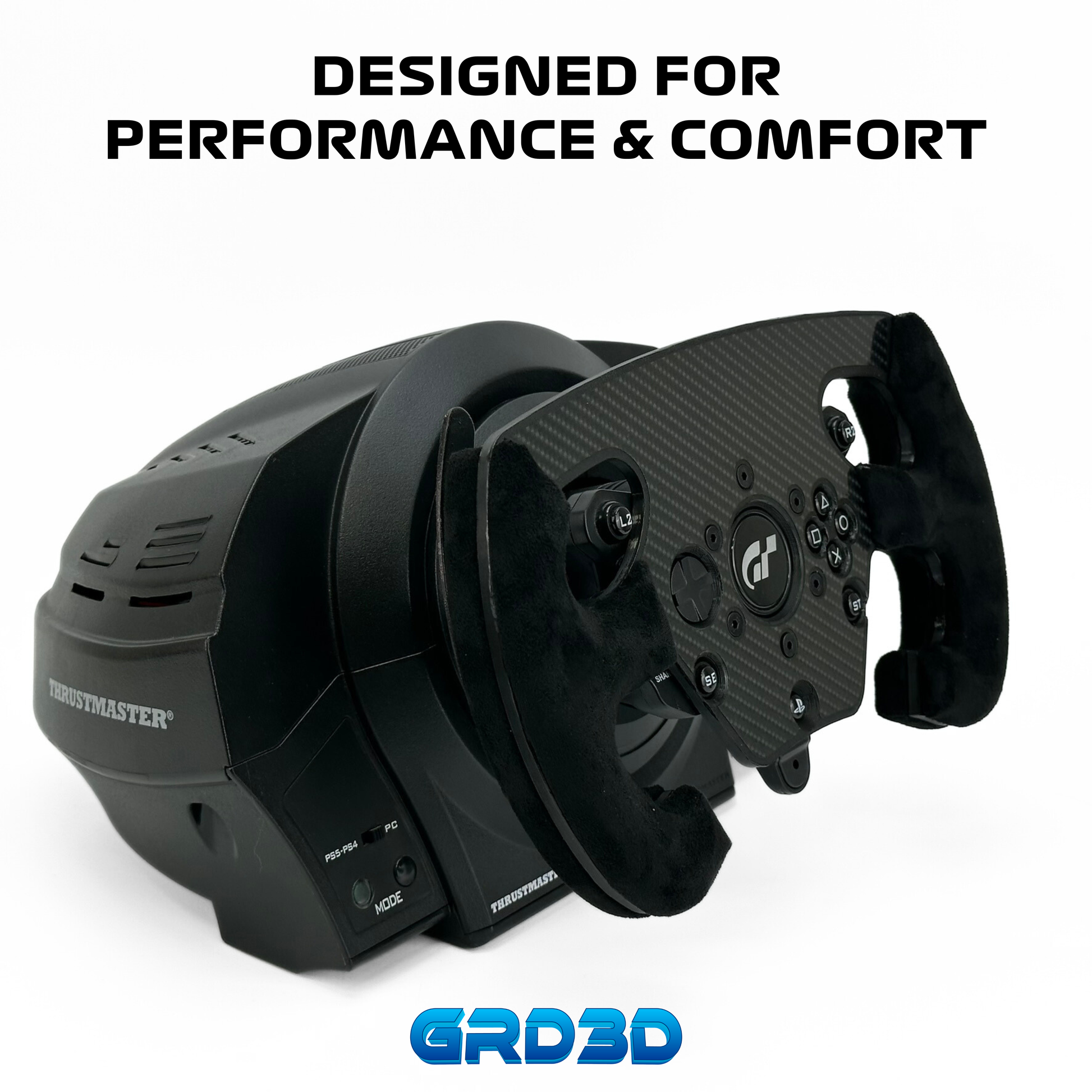 ⚠ Important Note: This is a wheel mod that mounts onto the original Thrustmaster button panel, replacing the stock round wheel. The motor base and button panel are not included – you must already own a complete Thrustmaster T300 for installation.