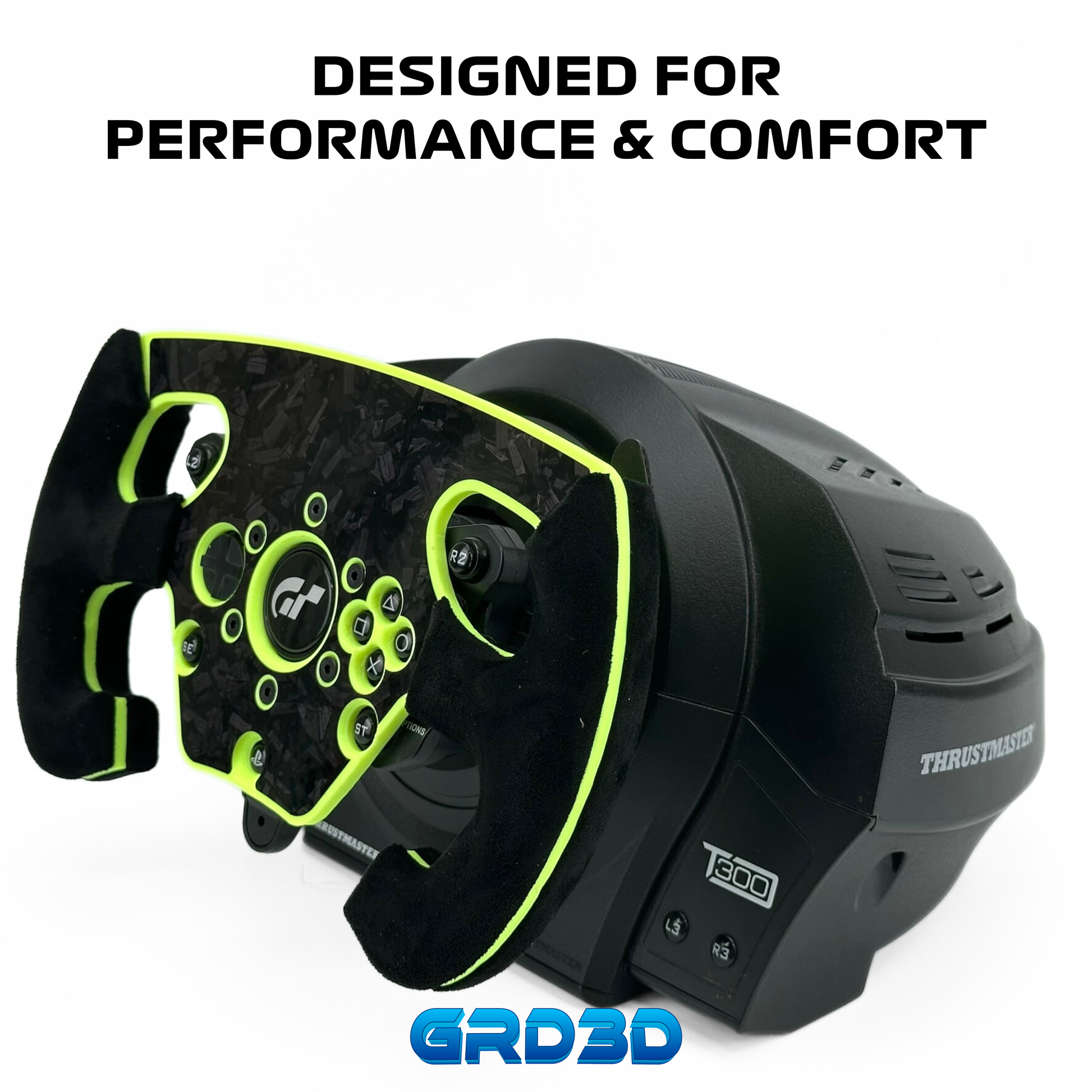 ⚠ Important Note: This is a wheel mod that mounts onto the original Thrustmaster button panel, replacing the stock round wheel. The motor base and button panel are not included – you must already own a complete Thrustmaster T300 for installation.