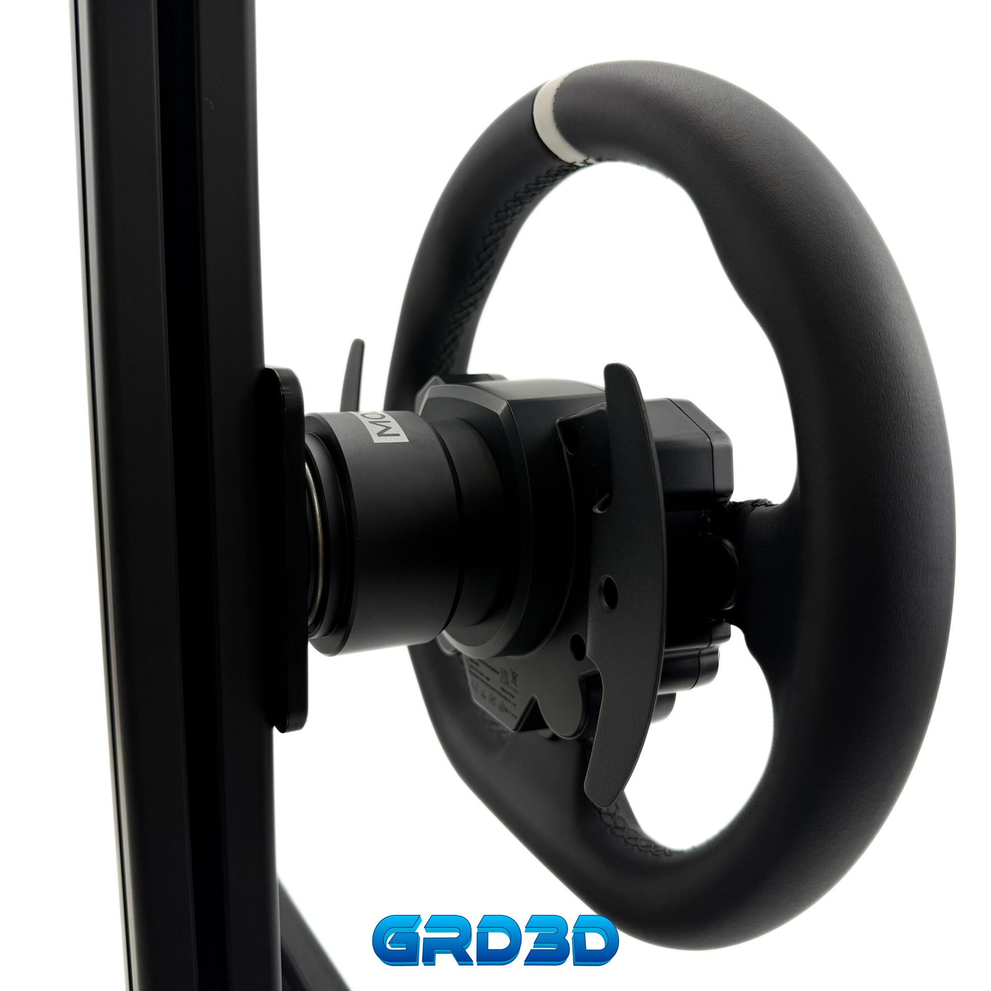 Keep your Moza steering wheel safely stored when not in use with this dedicated wheel support, designed for aluminum profile rigs.