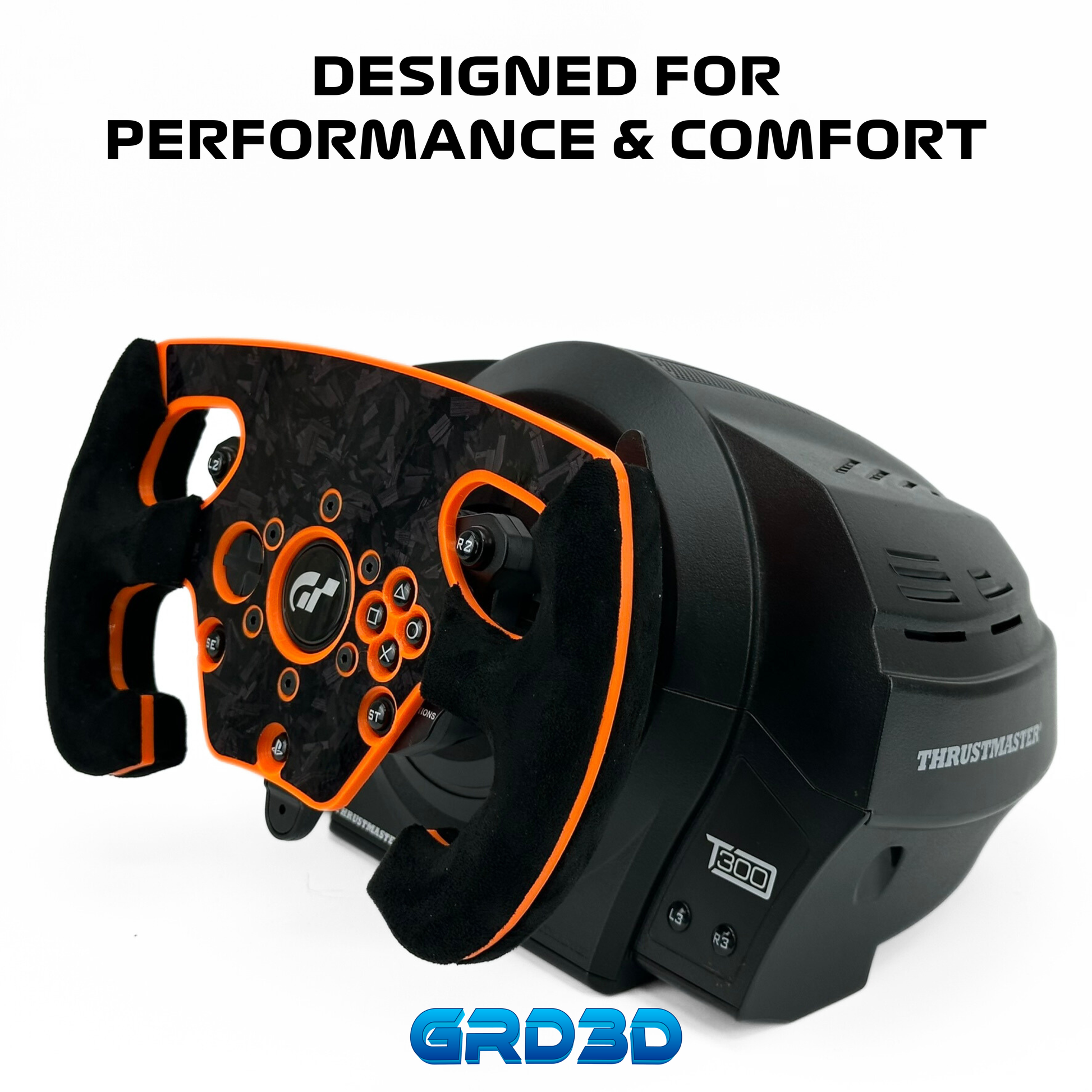 ⚠ Important Note: This is a wheel mod that mounts onto the original Thrustmaster button panel, replacing the stock round wheel. The motor base and button panel are not included – you must already own a complete Thrustmaster T300 for installation.